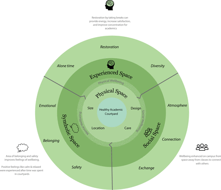 Healthy academic courtyards (adapted from Foellmer et al. 2021). Our courtyard study did not include active spaces, which would also contribute to physical wellbeing.