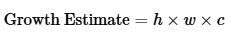 where h is tree height, w is a singular crown width measurement, and c is the tree caliper.
